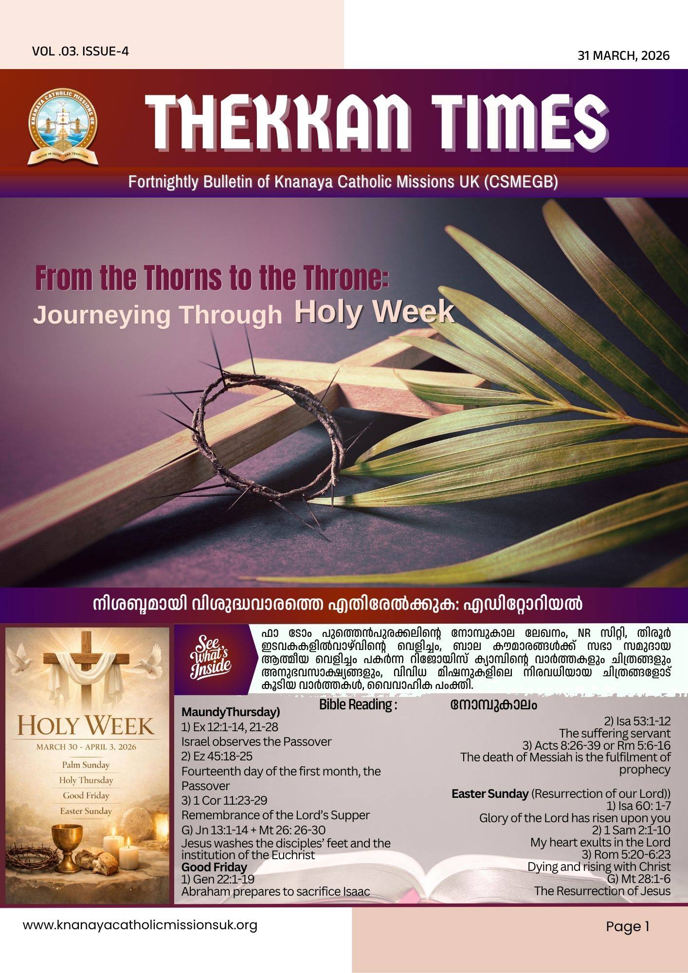 Fortnightly Bulletin of Knanaya Catholic Missions UK (CSMEGB) shares updates from various Knanaya missions across the UK.