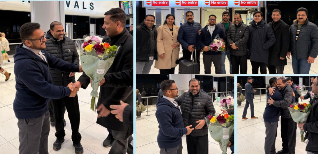 രണ്ടു വൈദികർക്കും എയർപോർട്ടിൽ ഊഷ്മളമായ വരവേൽപ്പാണ് നൽകിയത്. ഫാ. എൽബിൻ പടിഞ്ഞാറേക്കര സുനിയച്ചന്റെ അഭാവത്തിൽ മാഞ്ചസ്റ്റർ പാരീഷ് കൗൺസിൽ അംഗങ്ങളും പ്രീസ്റ്റ് ഇൻ ചാർജ് ആയ ഫാ. സിൽജോ ആവണിക്കുന്നേൽ ചേർന്ന് സ്വീകരിച്ചു.