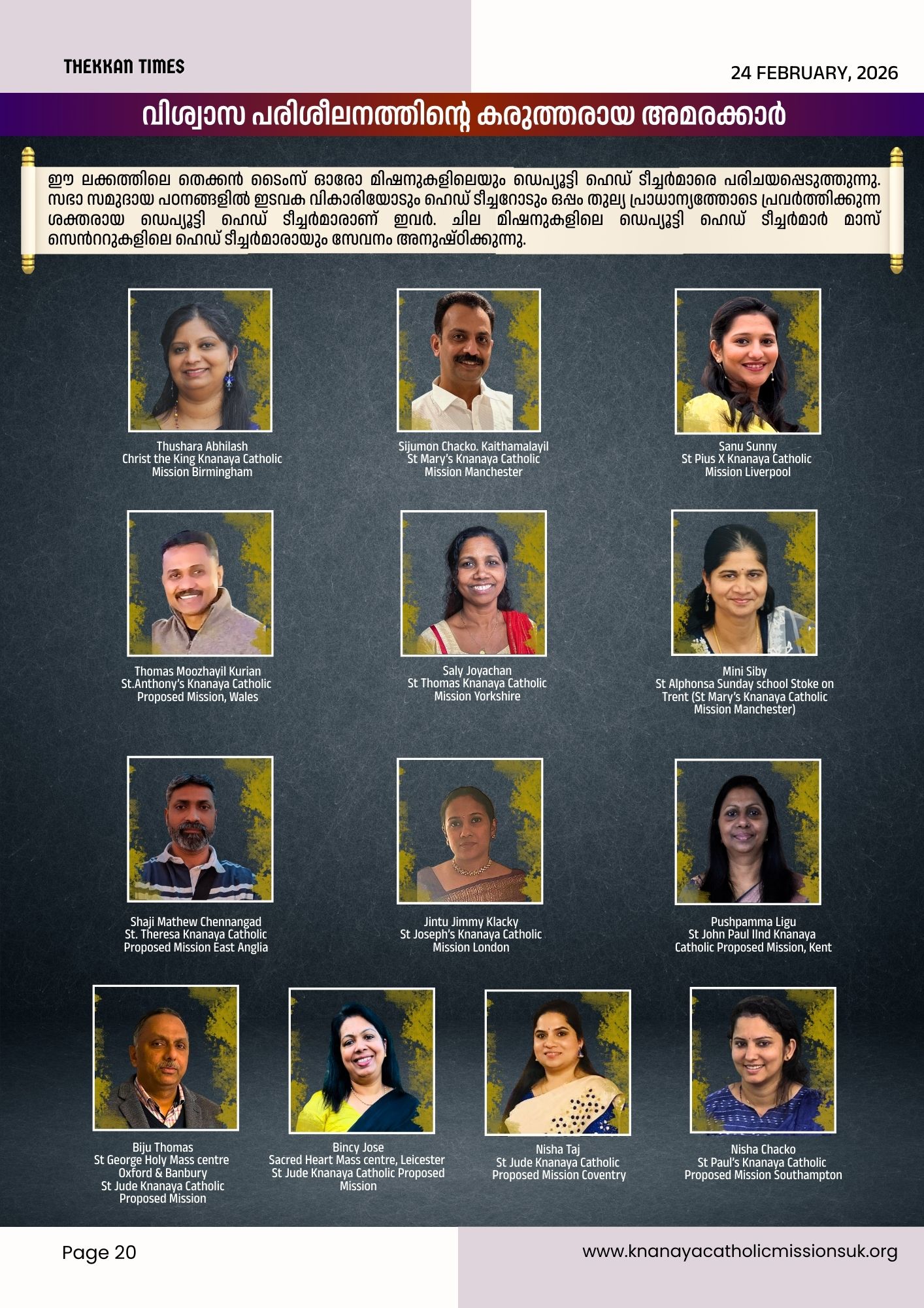 ഈ ലക്കത്തിലെ തെക്കൻ ടൈംസ് ഓരോ മിഷനുകളിലെയും ഡെപ്യൂട്ടി ഹെഡ് ടീച്ചർമാരെ പരിചയപ്പെടുത്തുന്നു. സഭാ സമുദായ പഠനങ്ങളിൽ ഇടവക വികാരിയോടും ഹെഡ് ടീച്ചറോടും ഒപ്പം തുല്യ പ്രാധാന്യത്തോടെ പ്രവർത്തിക്കുന്ന ശക്തരായ ഡെപ്യൂട്ടി ഹെഡ് ടീച്ചർമാരാണ് ഇവർ. ചില മിഷനുകളിലെ ഡെപ്യൂട്ടി ഹെഡ് ടീച്ചർമാർ മാസ് സെൻററുകളിലെ ഹെഡ് ടീച്ചർമാരായും സേവനം അനുഷ്ഠിക്കുന്നു.